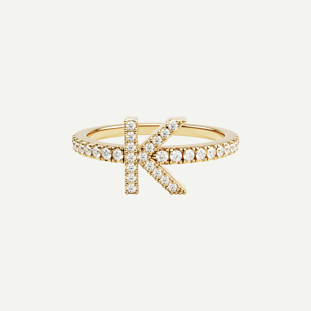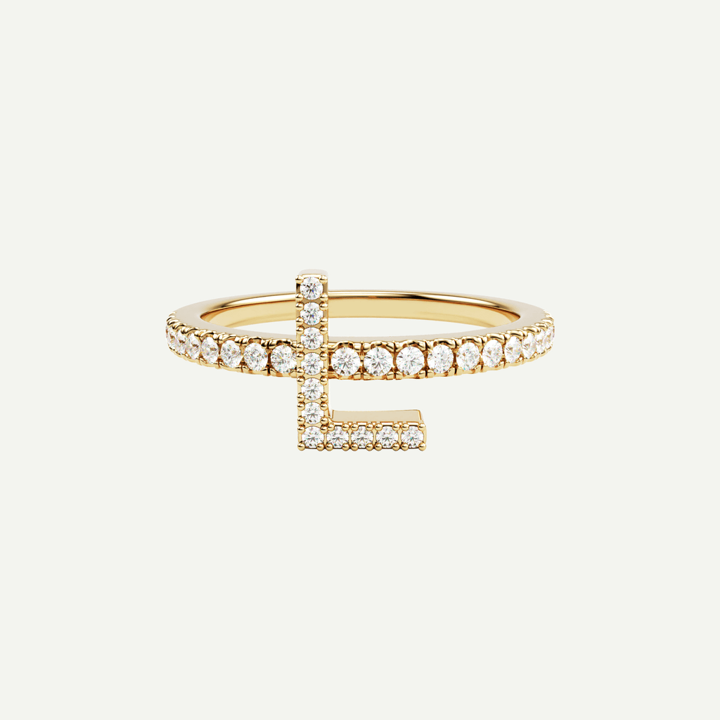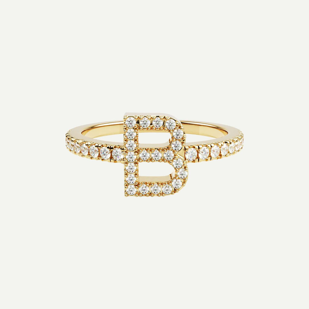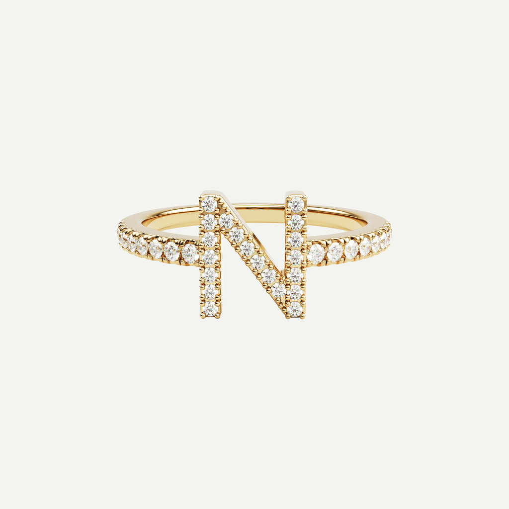 Bogstavring i 18 karat guld med brillantslebne diamanter i kvaliteten Top Wesselton VVS.