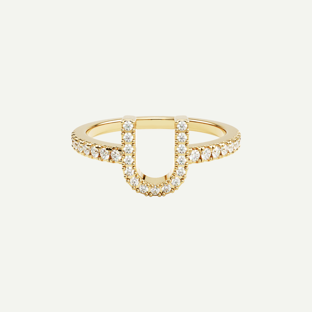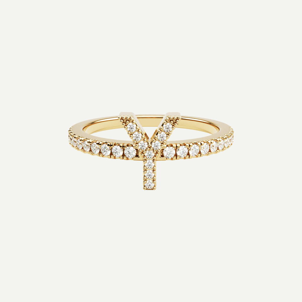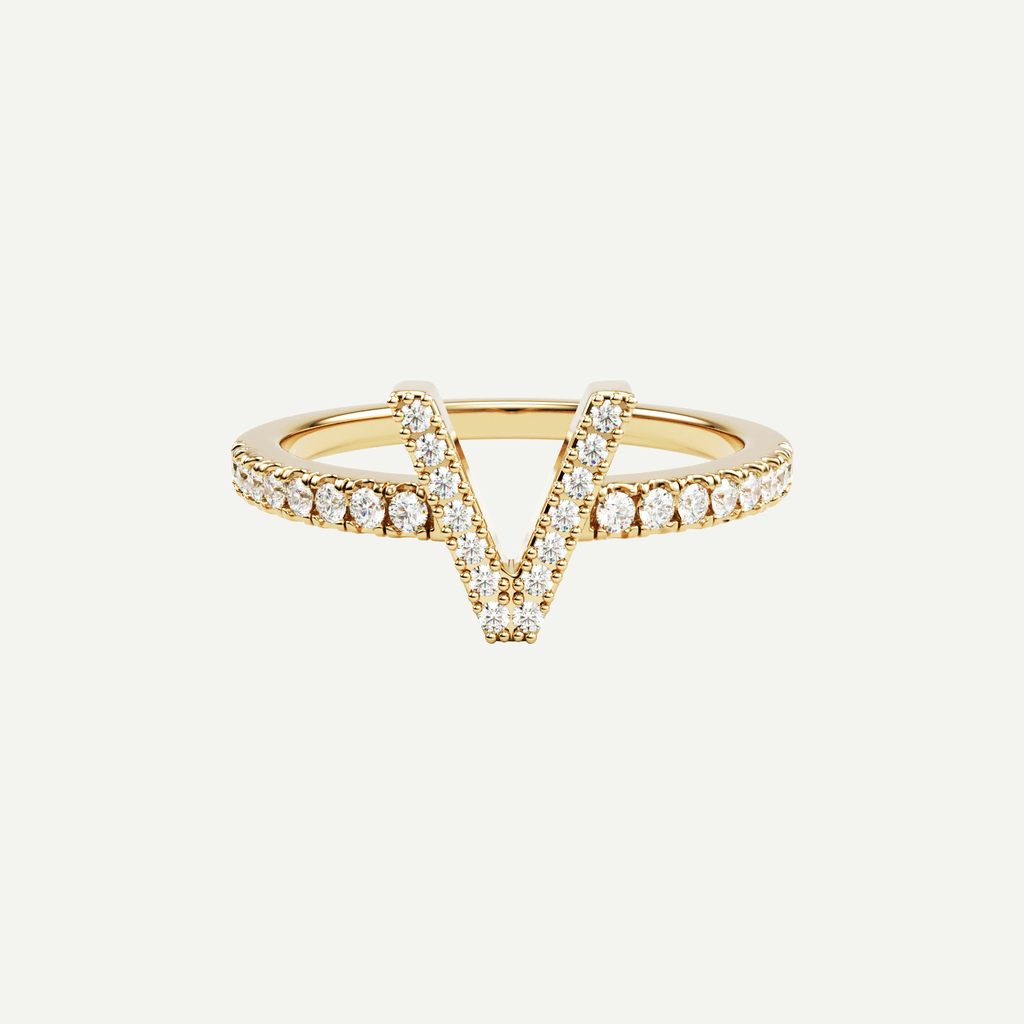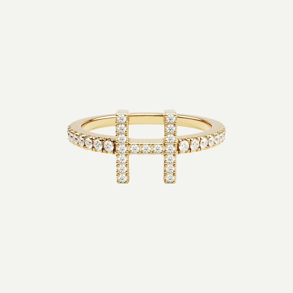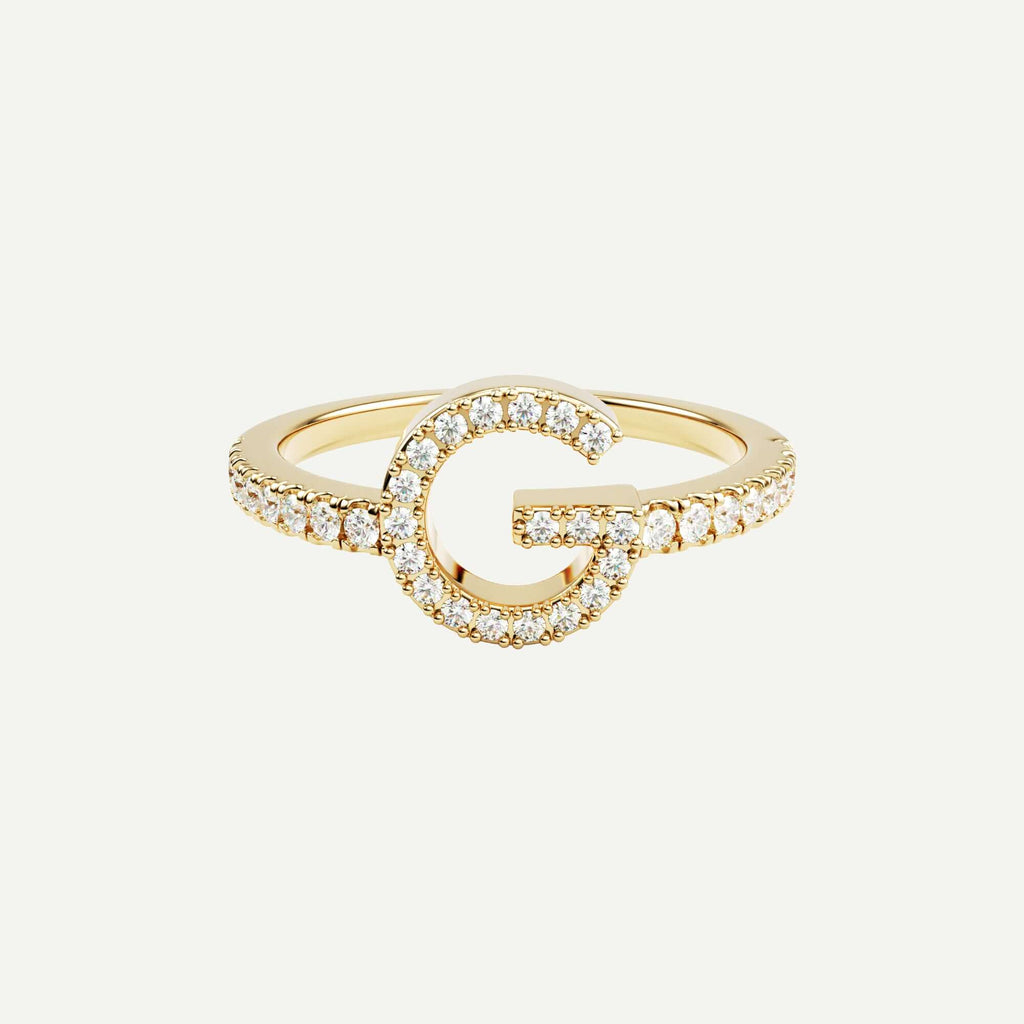 Bogstavring i 18 karat guld med brillantslebne diamanter i kvaliteten Top Wesselton VVS.