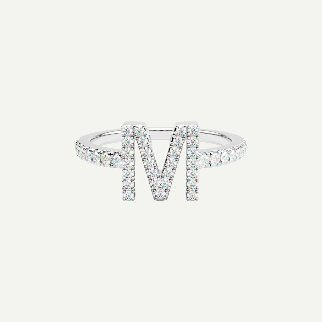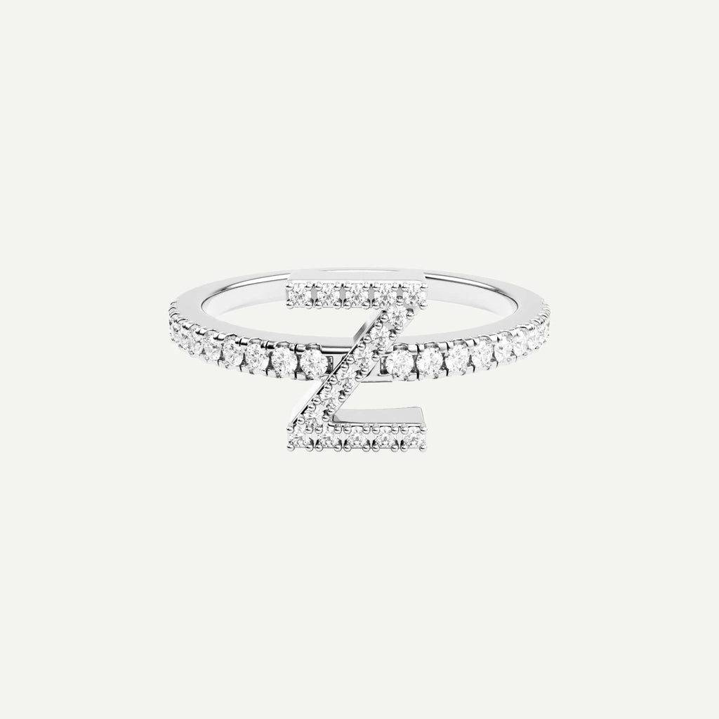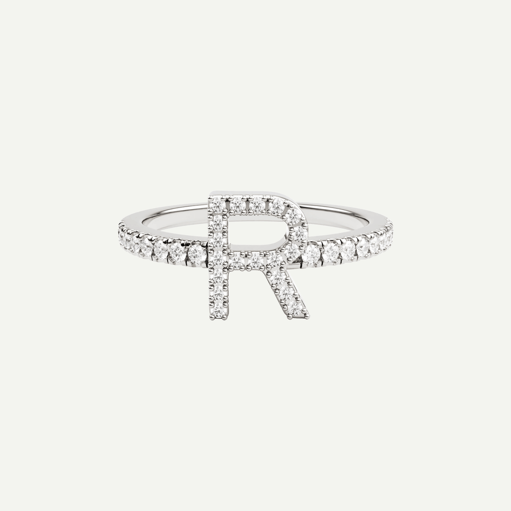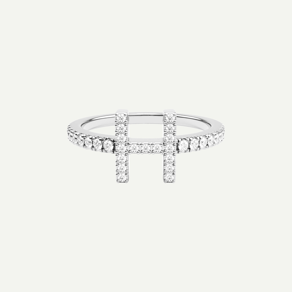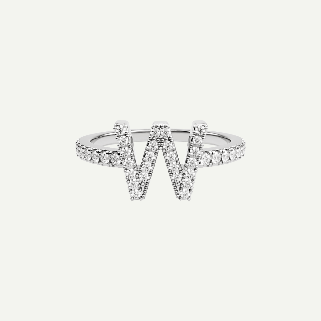 Bogstavring i 18 karat hvidguld med brillantslebne diamanter i kvaliteten Top Wesselton VVS.