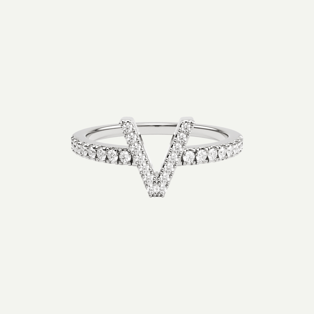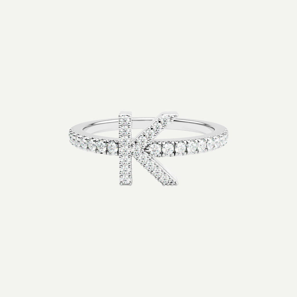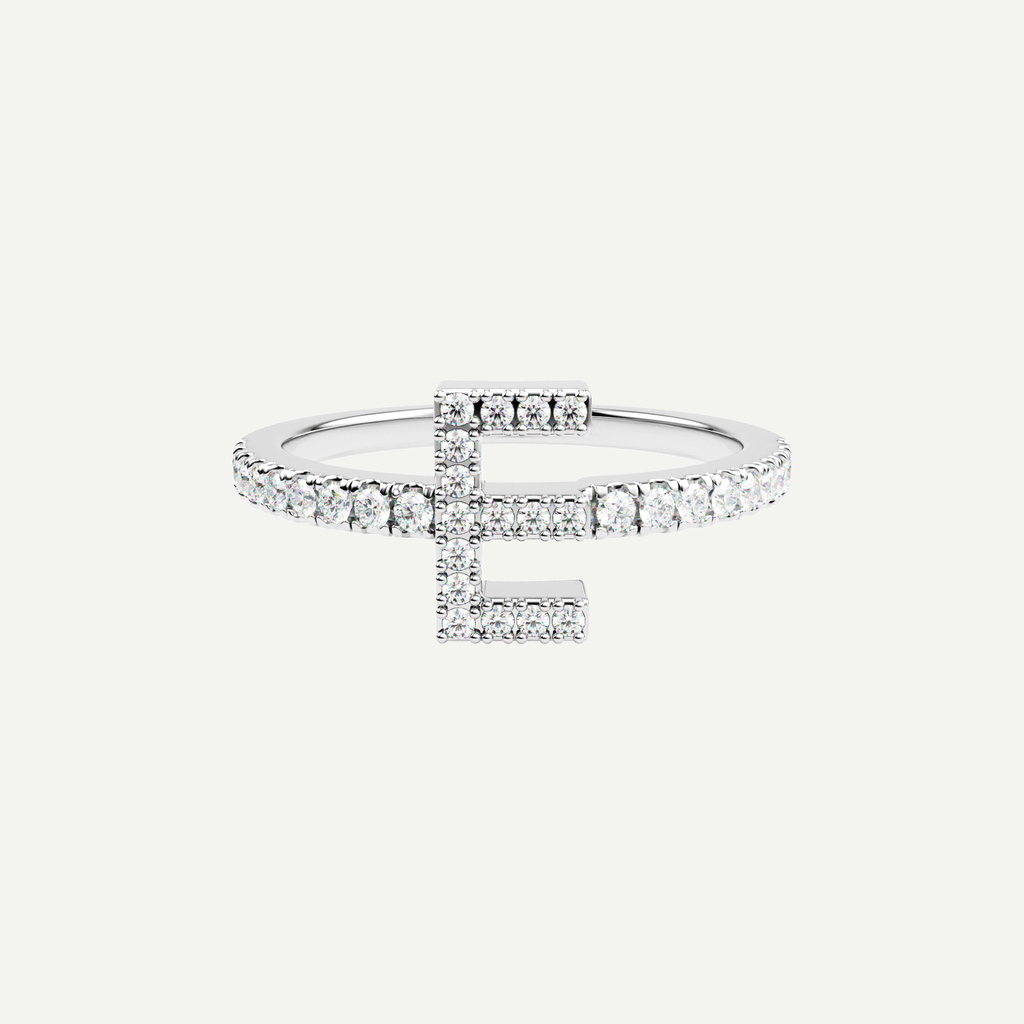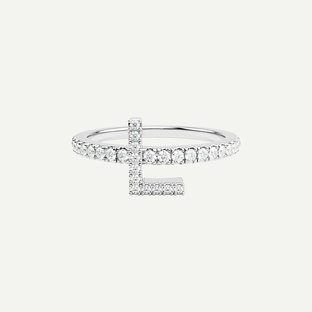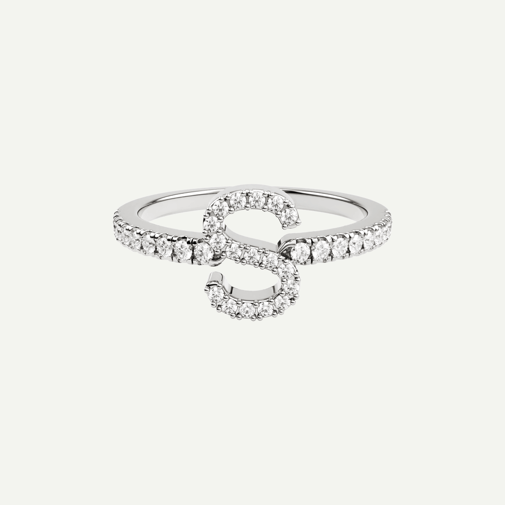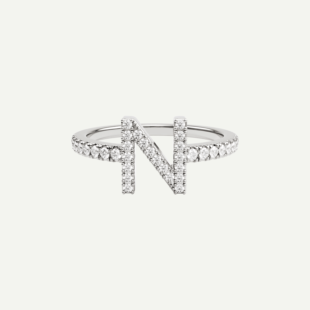 Bogstavring i 18 karat hvidguld med brillantslebne diamanter i kvaliteten Top Wesselton VVS.