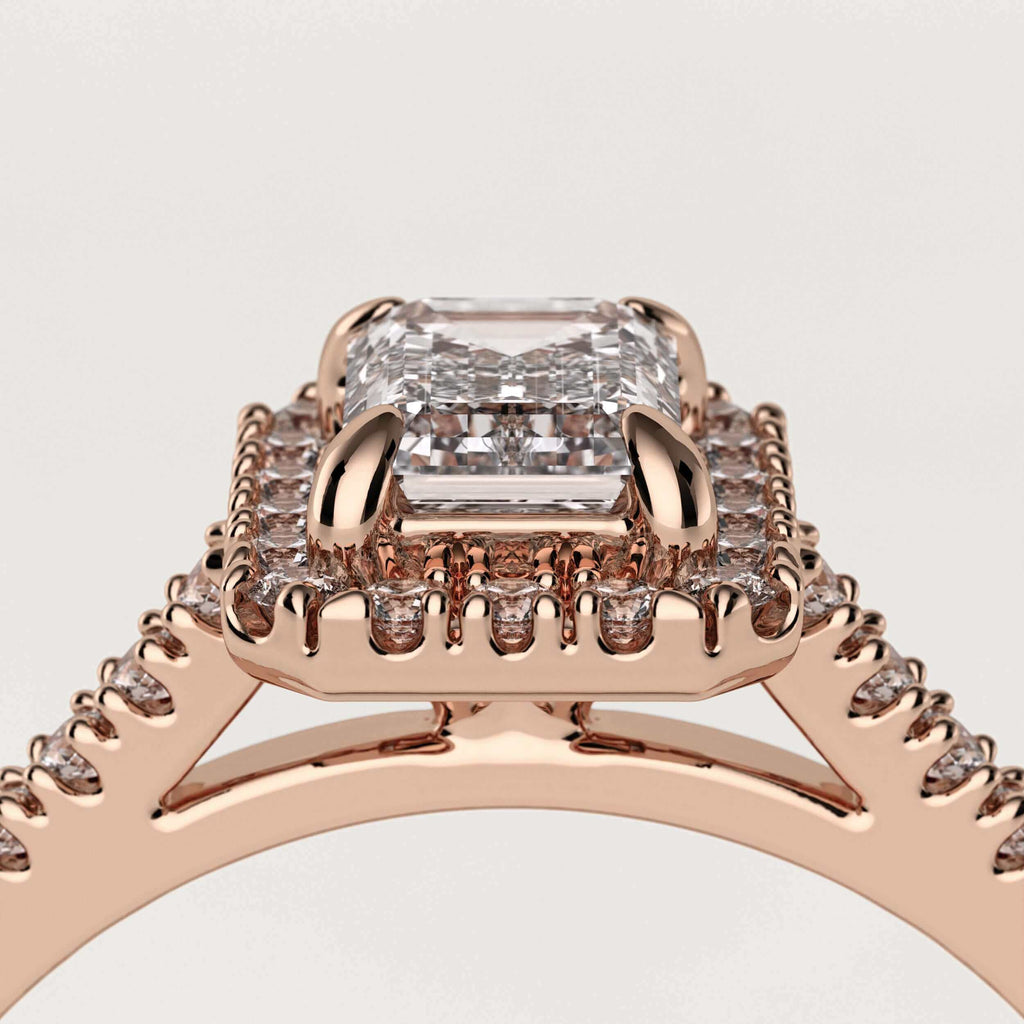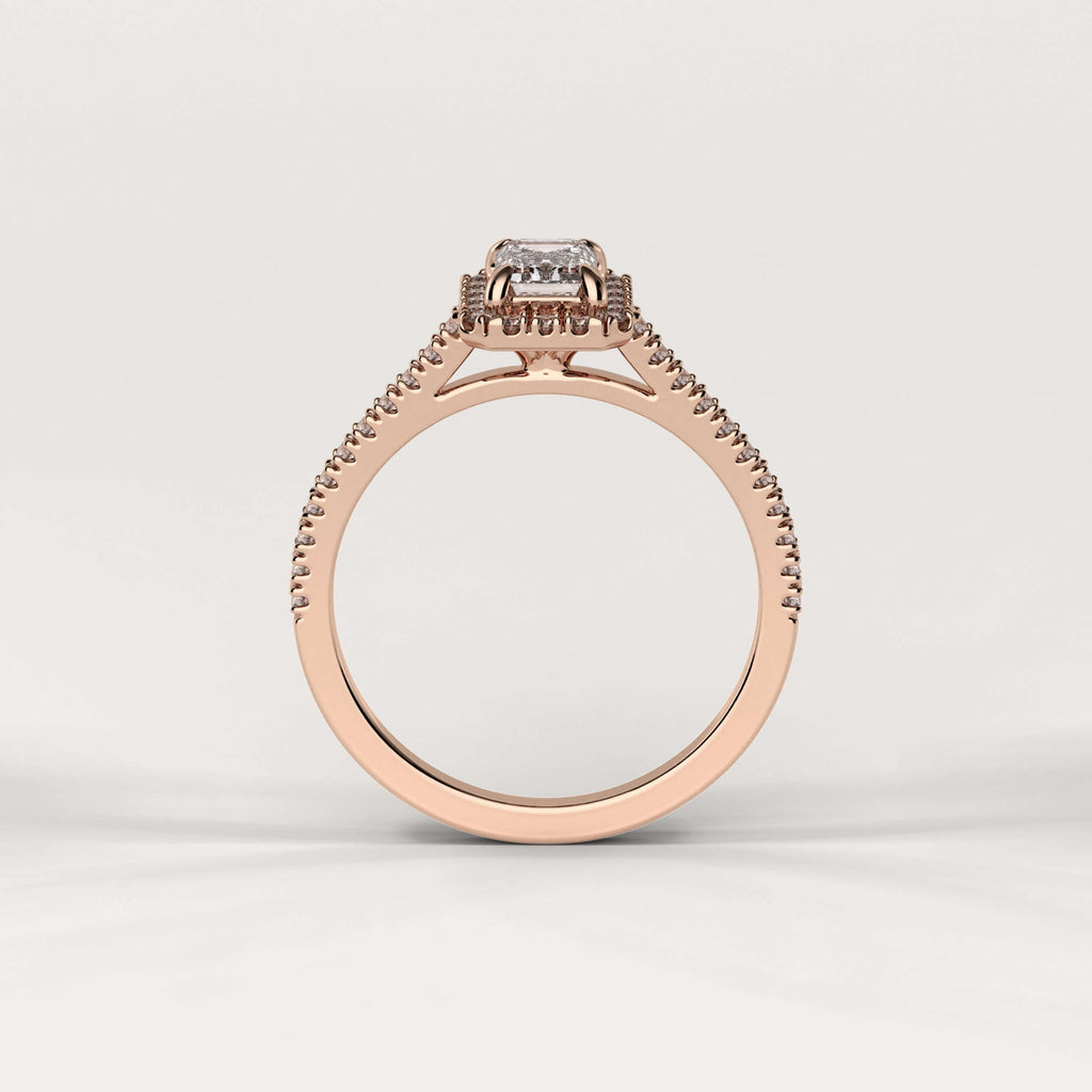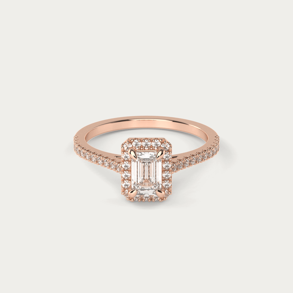 Forlovelsesring i 18 karat rosaguld med en smaragdsleben diamant på 0,50 carat. I alt 0,86 carat diamanter i kvaliteten Top Wesselton VVS. GIA-certifikat medfølger.