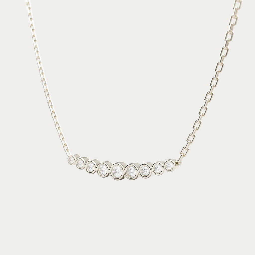 Aquarius Halskæde i 18 karat hvidguld med ni naturlige brillantslebne diamanter i Top Wesselton VVS, samlet 0,26 carat. Justerbar fra 42-45 cm.