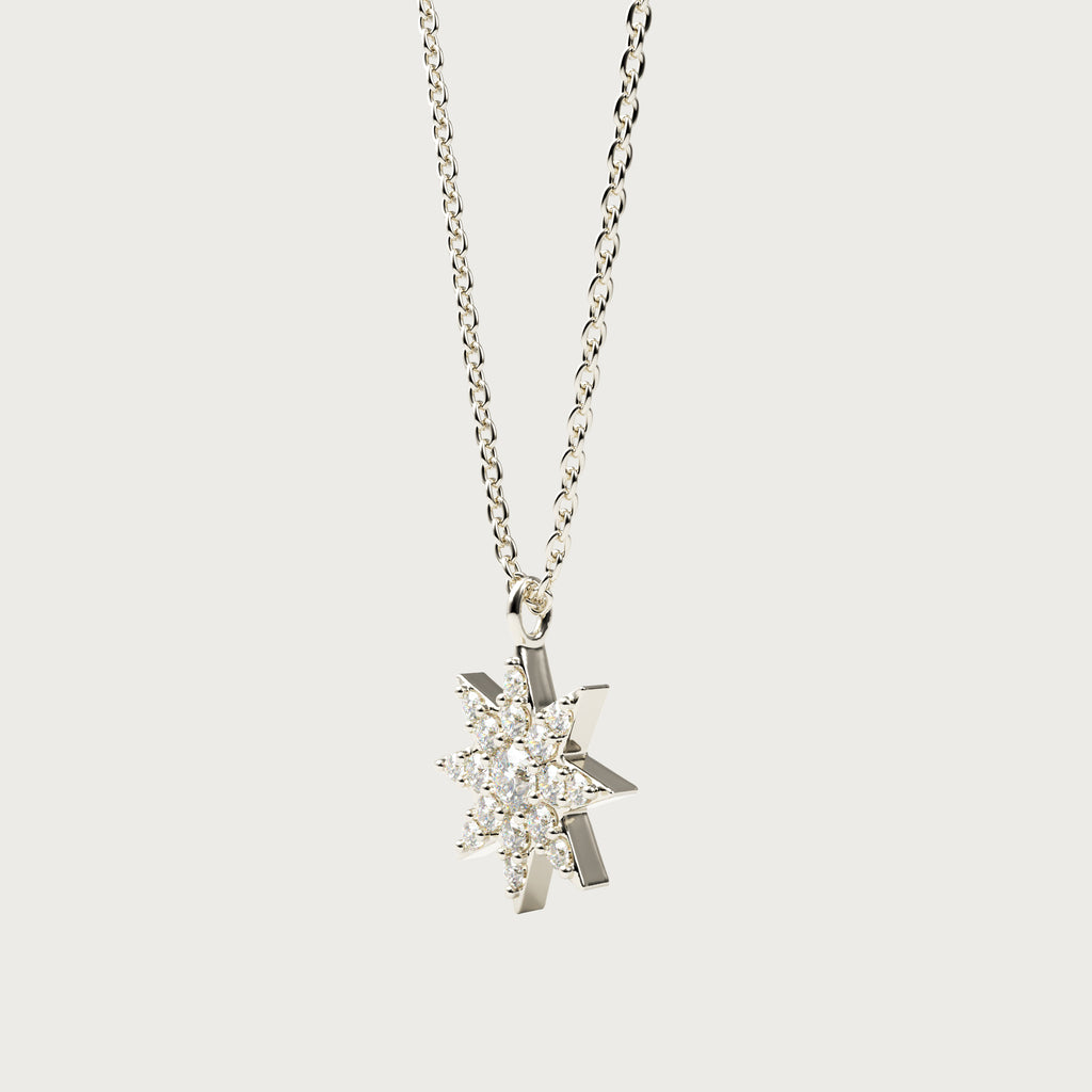 Sirius Vedhæng i 18 karat hvidguld med funklende Top Wesselton VVS diamanter. Centerstenen vejer 0,22 carat, samlet 0,90 carat. Justerbar 42-45 cm.