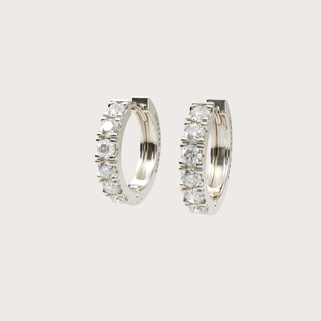 Vores hoops fremstilles i 18 karat guld og hvidguld med naturlige konfliktfrie diamanter i kvaliteten Top Wesselton VVS. Diamanter over 0,20 carat leveres med certifikat fra GIA.