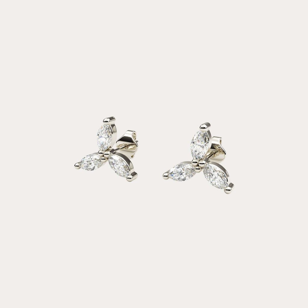 Lara øreringe i 18 karat hvidguld, inspireret af blomsten "Trillium Ovatum", smukt designet med marquise-slebne naturlige Top Wesselton VVS diamanter, samlet 0,60 carat pr. par.