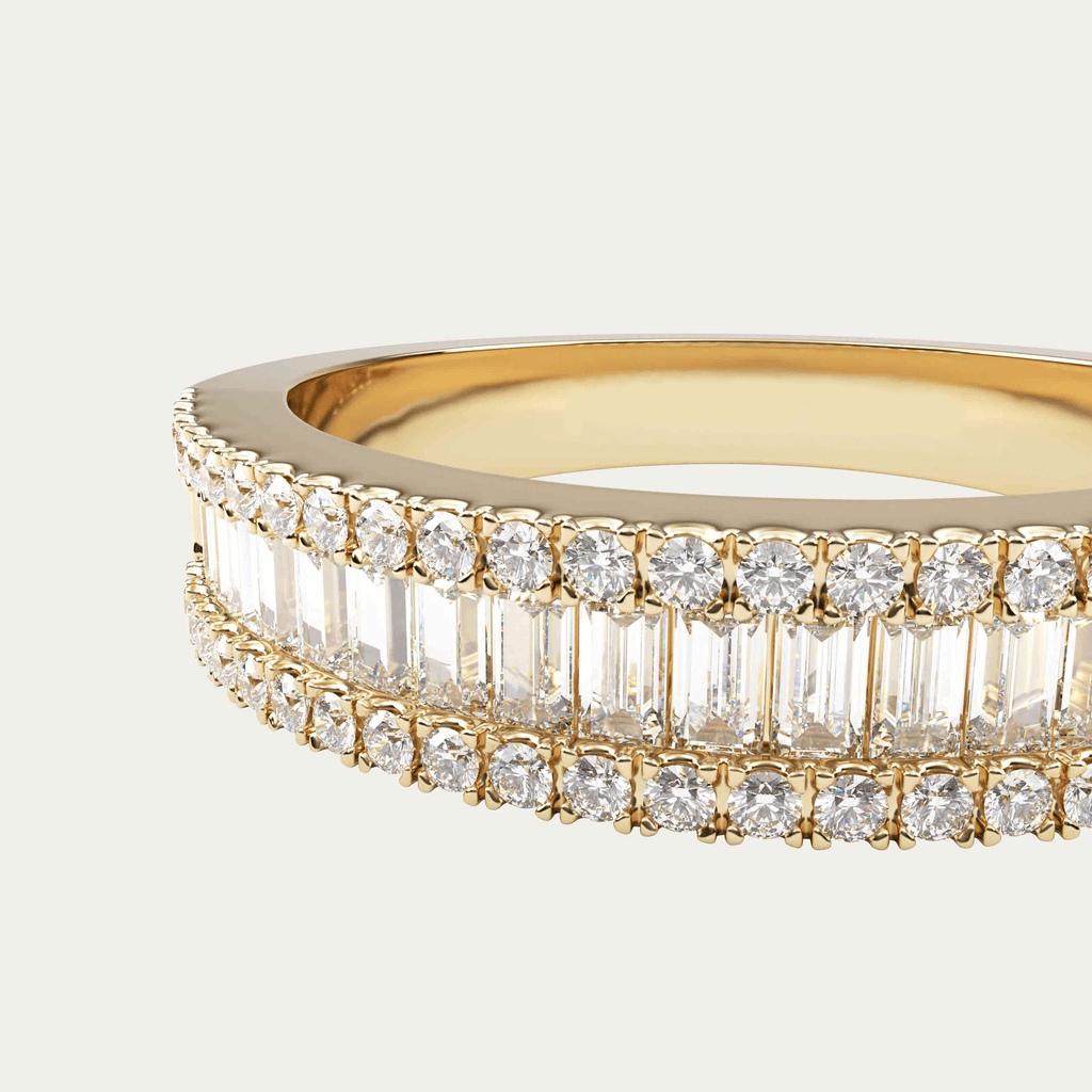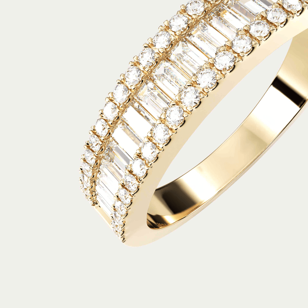 Ring i 18 karat guld med baguetteslebne og brillantslebne diamanter. I alt 0,62 carat i kvaliteten Top Wesselton VVS.