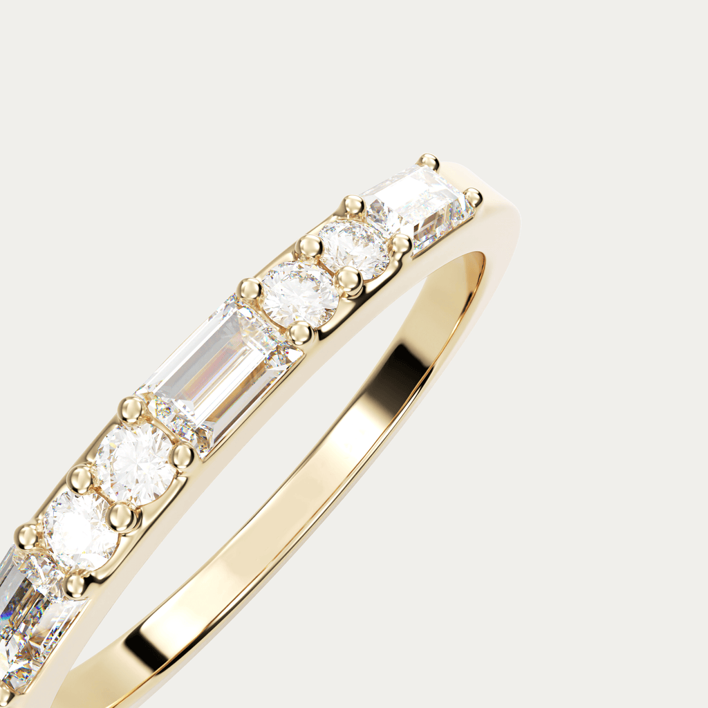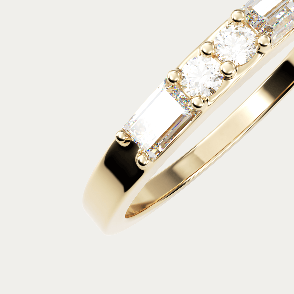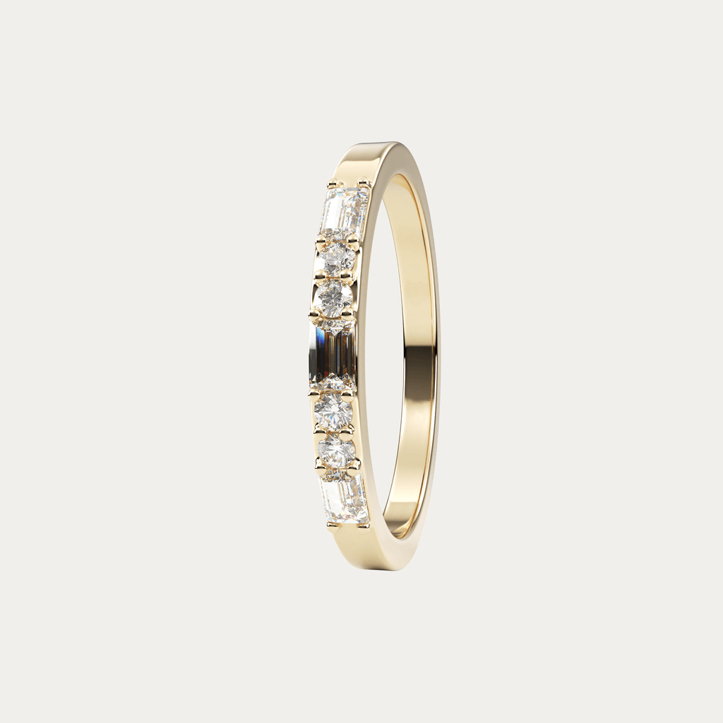 Ring i 18 karat guld med baguetteslebne og brillantslebne diamanter. I alt 0,38 carat i kvaliteten Top Wesselton VVS.