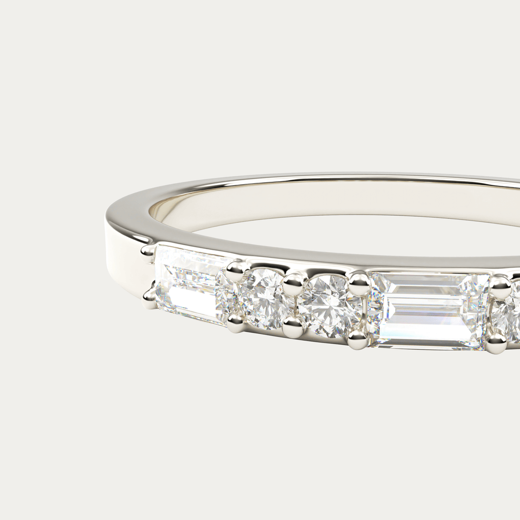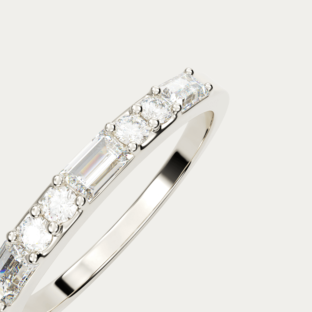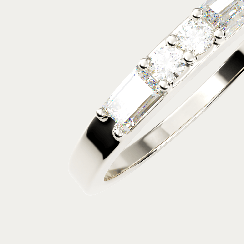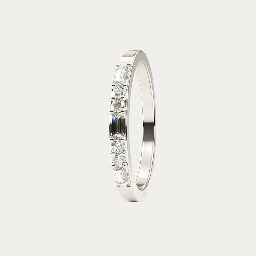 Ring i 18 karat hvidguld med baguetteslebne og brillantslebne diamanter. I alt 0,38 carat i kvaliteten Top Wesselton VVS.