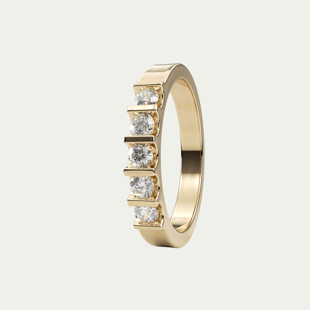 Ring i 18 karat guld med fem brillantslebne diamanter. I alt 0,40 carat i kvaliteten Top Wesselton VVS.